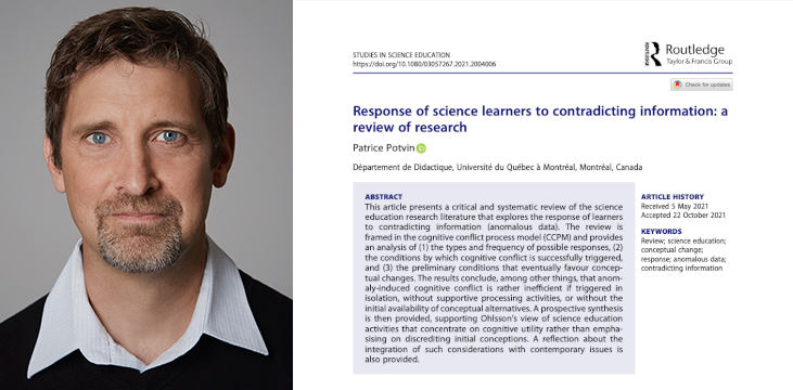 Le professeur et directeur de l’EREST Patrice Potvin a publié un article intitulé Response of science learners to contradicting information: a review of research dans la revue Studies in Science Education. Dans cet article, l’auteur présente une revue de littérature systématique et critique des réactions possibles des élèves au contact d’informations contradictoires eu égard aux…
