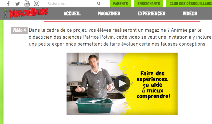 Les Débrouillards viennent de publier leur toute nouvelle trousse pédagogique. Dans celle-ci, intitulée « J’explore les médias« , on peut entre autres y voir le Scientifique en chef du Québec, Rémi Quirion, ainsi que le directeur de l’EREST. Bravo aux Débrouillards pour cette trousse fort utile en ces temps troublés !