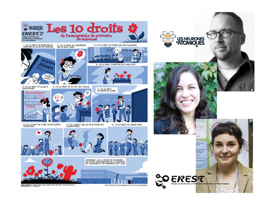 Marie-Hélène Bruyère et Estelle Desjarlais, membres étudiantes de l’EREST, ainsi que Martin Brouillard, des Neurones Atomiques, ont récemment développé un concept d’ « affiche déculpabilisante ». Dessinée par l’artiste Jipi Perrault, financée en partie par l’EREST, adressée aux enseignant.e.s du primaire et destinée à les encourager à faire des sciences en classe, l’affiche a récemment été rendue…